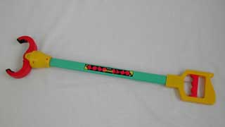 懐かしいですね。管理人も小さい頃、これと同じ物を持っていました。取っ手部分を握るとアームが閉じるようになっていて、軽い物なら持ち上げることが出来ます。